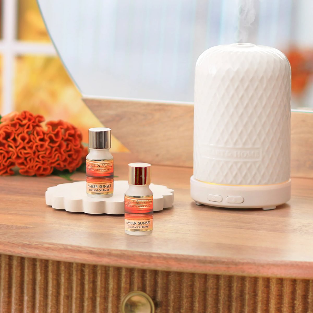 Relax and revive with a selection of Heart and Home vegan friendly, essential oil blends, designed to fill the home with fabulous fragrance whilst enhancing your mood and supporting your wellbeing. Capturing the radiant warmth of a sun-soaked evening, blending sparkling orange zest and fresh neroli blossom with the honeyed richness of sweet amber. This enchanting fragrance is both tranquil and elegant.